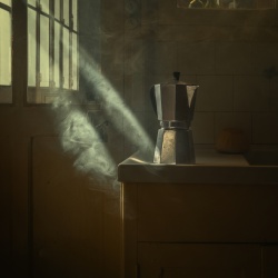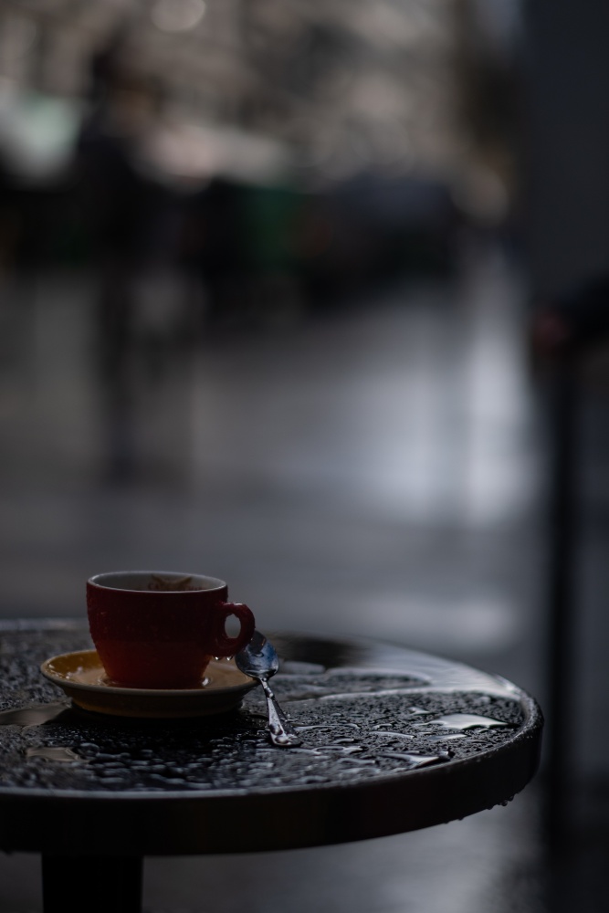 "Sur la table perlée, la tasse garde la trace d’un instant.