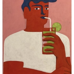 Les contours épais et les aplats de couleur rappellent le fauvisme et le style de l’art moderne figuratif.